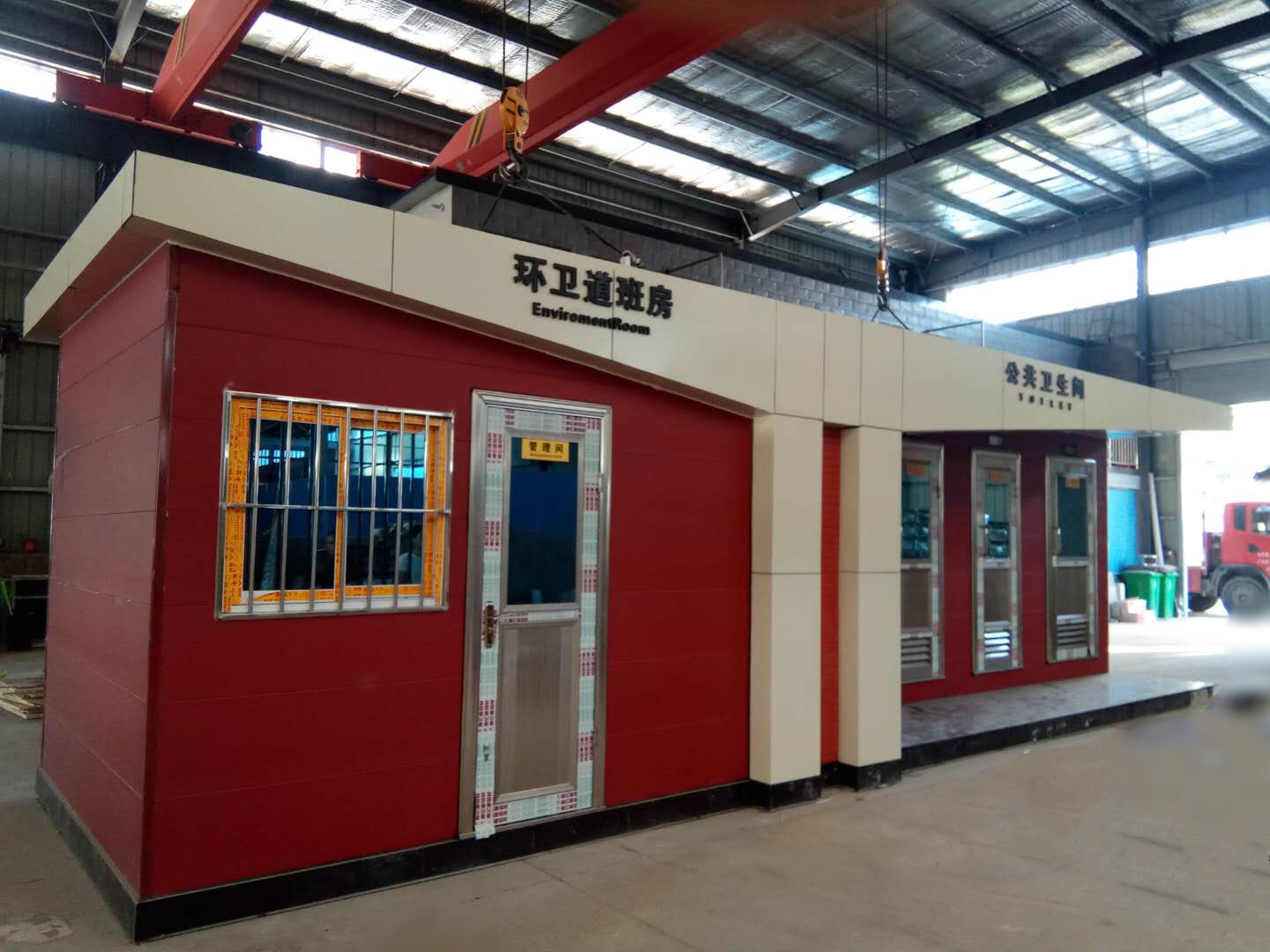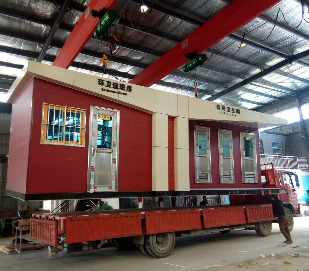 1、房體結構: 采用輕鋼龍骨結構,鋼材全部使用國家標準鍍鋅鋼材。根據房體的大小特選用國標方管(50-100)焊接而成。鍍鋅管厚度為2.8mm,方管經過除銹后進行鍍鋅、防腐處理。這樣就會延長廁所使用壽命。